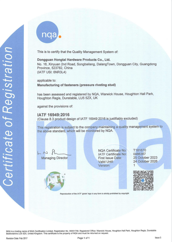 東莞市紅泰五金制品有限公司,公司占地六千多平方米,擁有五十多組螺絲機(jī)及六十臺(tái)自動(dòng)車床設(shè)備。是一家專業(yè)設(shè)計(jì)、生產(chǎn)ISO、DIN、GB、JIS、ANSI、BS及客戶指定特殊要求的高精密五金緊固件的制造企業(yè)。
